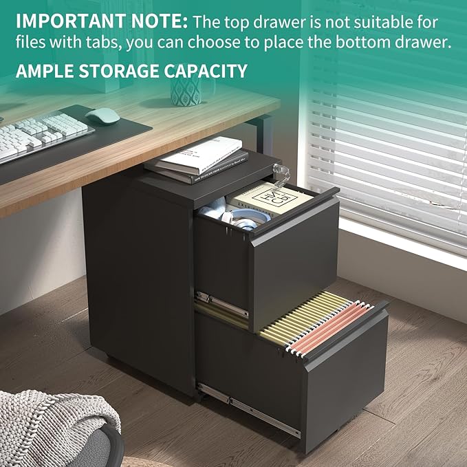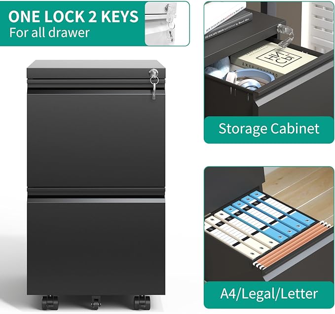 About This ✦【Locking Filing Cabinet 2 drawer】This under desk file cabinet with wheels has a handy lock system that uses...