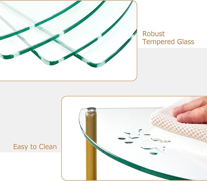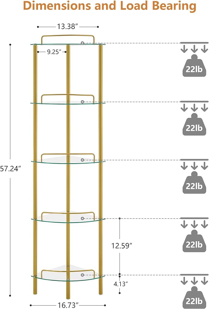 5-Tier Corner Shelf Stand, Gold Corner Bookshelf, Bathroom Organizer, Plant Stand, Tempered Glass Shelves, Modern Style for Living Room, Bedroom, Kitchen, Home Office, Metallic Gold