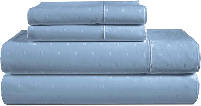LANE LINEN 100% Egyptian Cotton Bed Sheets - 1000 Thread Count 3PC Twin XL Sheets Set, Bedding Sheets, Sateen Weave, Luxury Hotel Sheets, Fits Upto 16" Mattress, Swiss Dot - French Blue