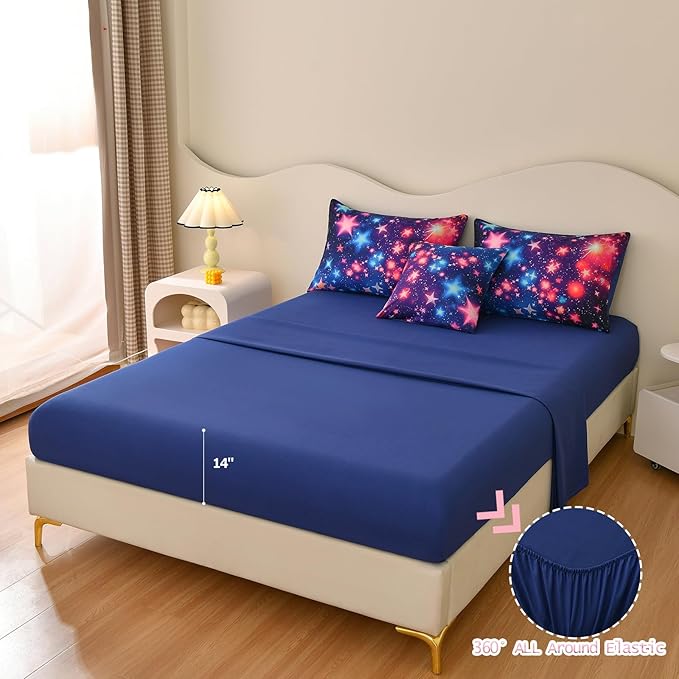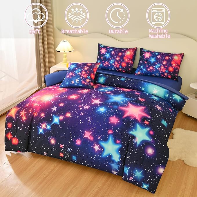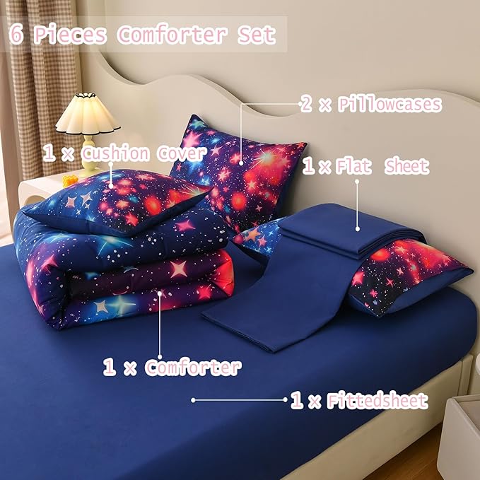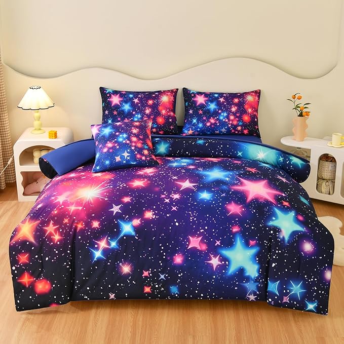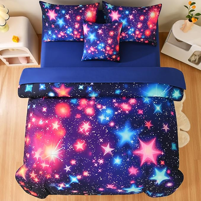DORCAS Star Twin Size Comforter Sets with Sheets for Girls Kids,6 Piece Starry Sky Girls Bedding Sets Twin,All Season Down Bed in a Bag(Colorful,Twin)