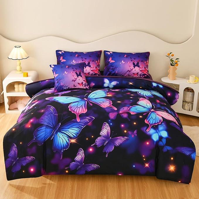 About This 【Butterfly Theme Design】This butterfly comforter set combines the elements of butterflies and starry sky, with different butterfly patterns...