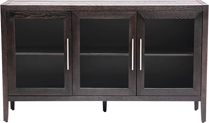 Merax Wood Sideboard, Buffet Cabinet with Storage & 3 Tempered Glass Doors, Built-in Adjustable Shelf, for Living, Dining Room and Kitchen, Brown