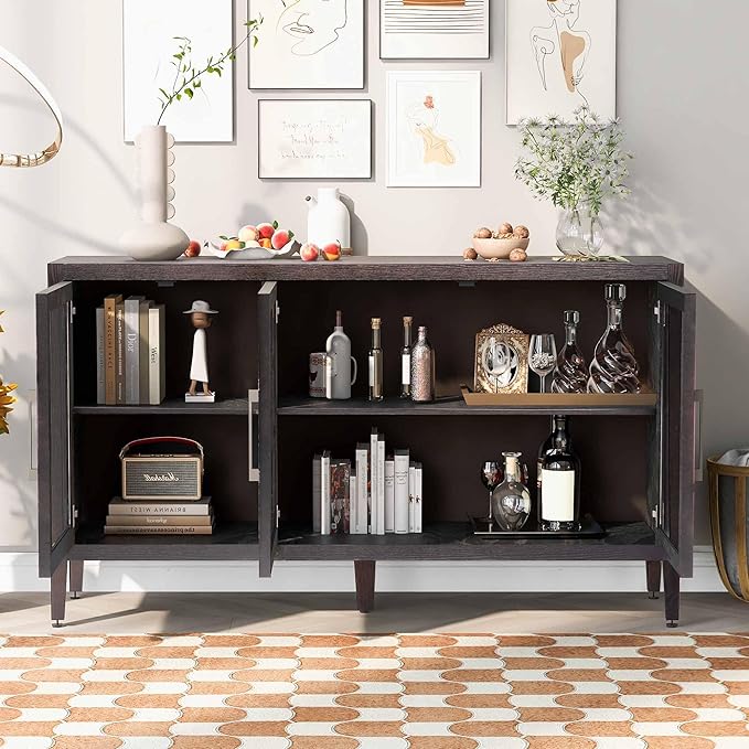 About This 【Exquisite Details】The slender metal handles and tempered glass doors bring this wood sideboard taste and quality. Also the...