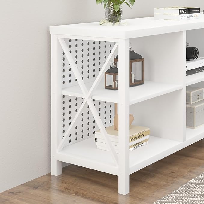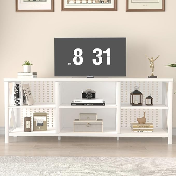 About This Match Home Decoration:Mixing modern and Industrial design, this stylish long white television stands features classic wood grain board...