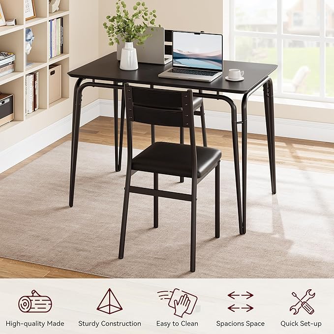Black Dining Table Set for 4, Kitchen Table and Chairs for 4, 5 Piece Kitchen Dining Room Table Set,Space-Saving Wood Modern Rectangle Dinner Table Dinette Furniture for Breakfast Nook,Home Office