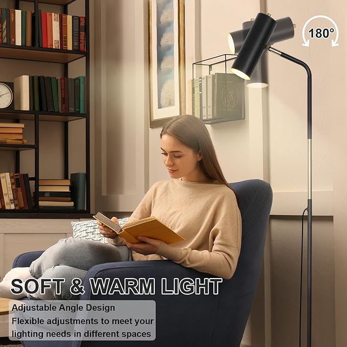 Floor Lamp, Industrial Floor Lamps for Living Rooms & Bedrooms - Rustic Farmhouse Reading Lamp Standing, Adjustable Metal Heads Indoor Task Lighting for Living Room Office Home Décor (Black-D01)