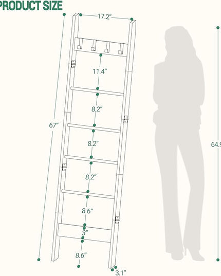 About This No Decorative Space Saver: Dimensions: 3.1"D x 17.2"W x 67"H. A 6-tier blanket ladder, prop the towel ladder...