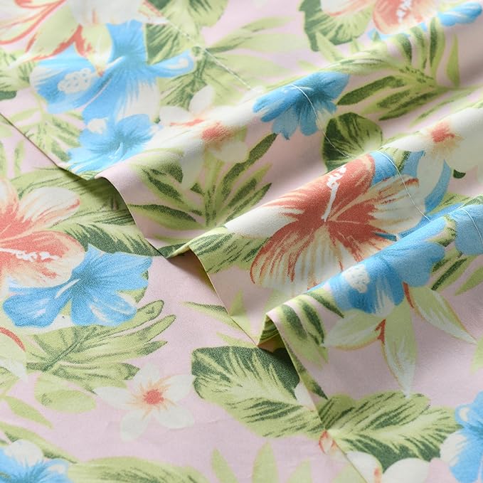 Elegant Comfort Softest and Coziest 6-Piece Sheet Set - 1500 Premium Hotel Quality Microfiber - Deep Pocket, Wrinkle Resistant 6-Piece Floral Magnolia Pattern Bed Sheet Set, King, Magnolia