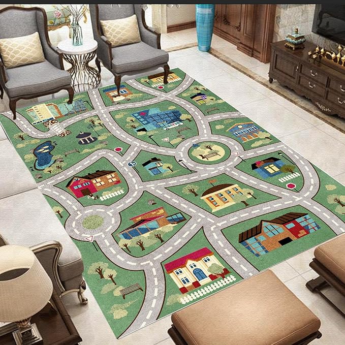 Analog ABC Kids Rug Playroom Car Rug Play Mat City Life Road Rug for Cars Fun City Map for Carpet for Bedroom Boys (63 * 94 inches, Charming Township)