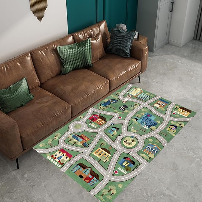 Analog ABC Kids Rug Playroom Car Rug Play Mat City Life Road Rug for Cars Fun City Map for Carpet for Bedroom Boys (31 * 47 inches, Charming Township)