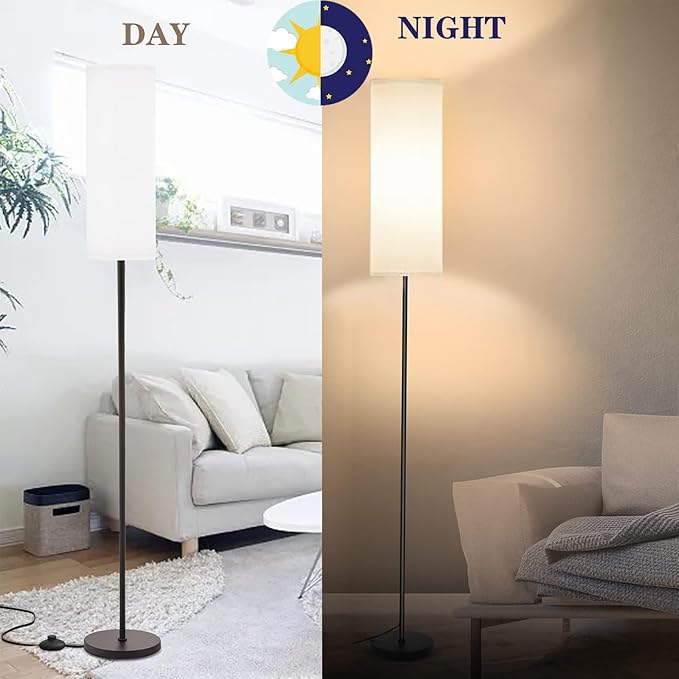 LED Floor Lamp Simple Design, Modern Floor Lamp with Shade, Tall Lamps for Living Room Bedroom Office Dining Room Kitchen, Black Pole Lamp with Foot Switch (with Bulb)(White Shade)