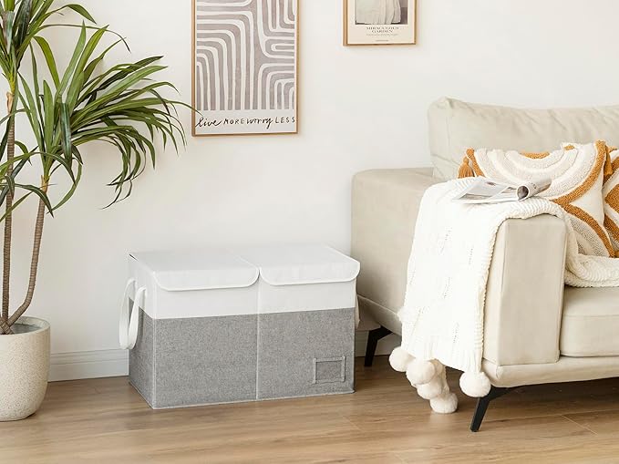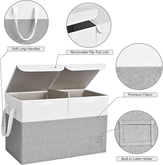 StorageWorks Toy Storage Organizer with Flip-Top Lids, Toy Bins for Living Room, Nursery Room, Playroom, Large Toy Chest for Kids, Grey and White, 24 ¾"L x 13" W x 16" H