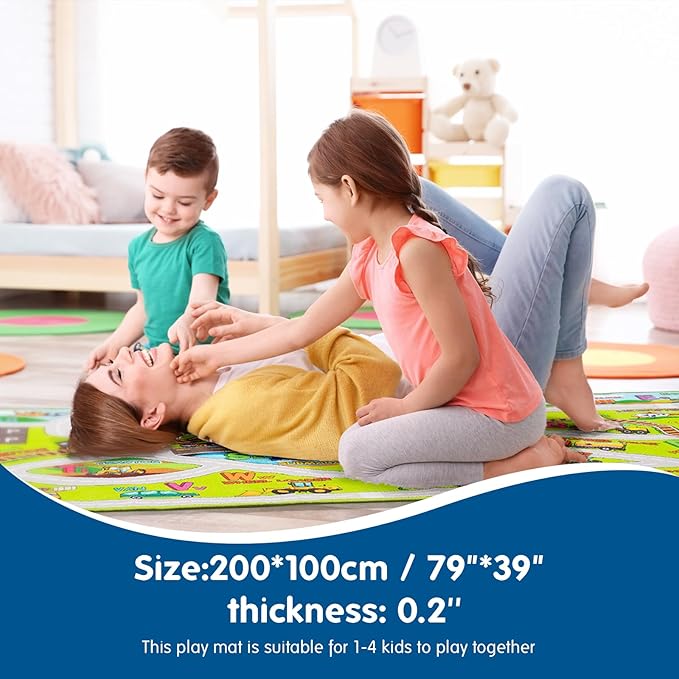 About This ❤️Bright Colors And Interactive Design: Kids' educational traffic map rug features vehicles, roads, and train tracks in vibrant...