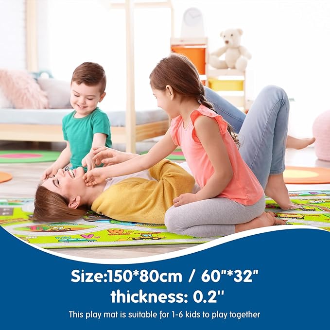 About This ❤️Bright Colors And Interactive Design: Kids' educational traffic map rug features vehicles, roads, and train tracks in vibrant...