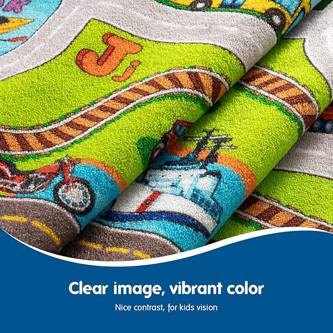 Booooom Jackson Train Car Mat for Kids Toy Cars,ABC Alphabet Car Rug for Kids To Play and Learn,Non Slip Car Play Rug for Boys Girls Room,Colorful Kids Rugs for Playroom Washable,Car and Train Playmat