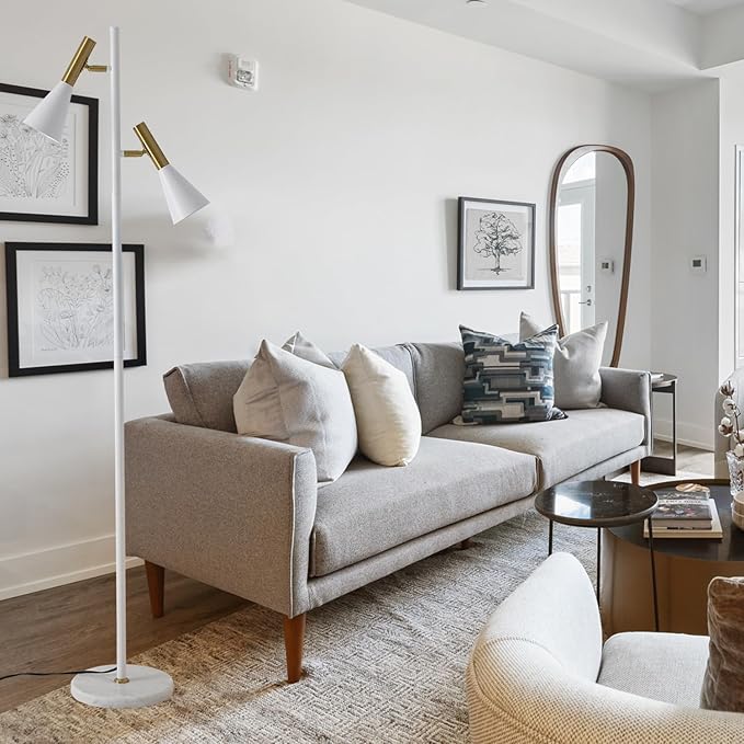 Elegant Modern Floor Lamp with 2 Adjustable Head,White and Gold Stand up Lamps with Marble Base,Tall Pole Uplight,Tree Floor Lamps for Living Room,Office
