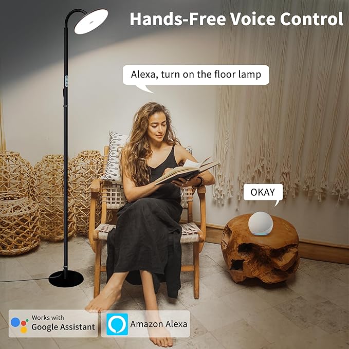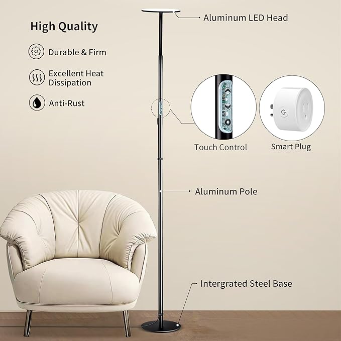 chiphy Floor Lamp, 76'' Tall Lamp, 40W 3500LM 30000Lux Super Bright Floor Lamp, Dimmable Brightness, with Smart Plug, for Living Room Bedroom Office