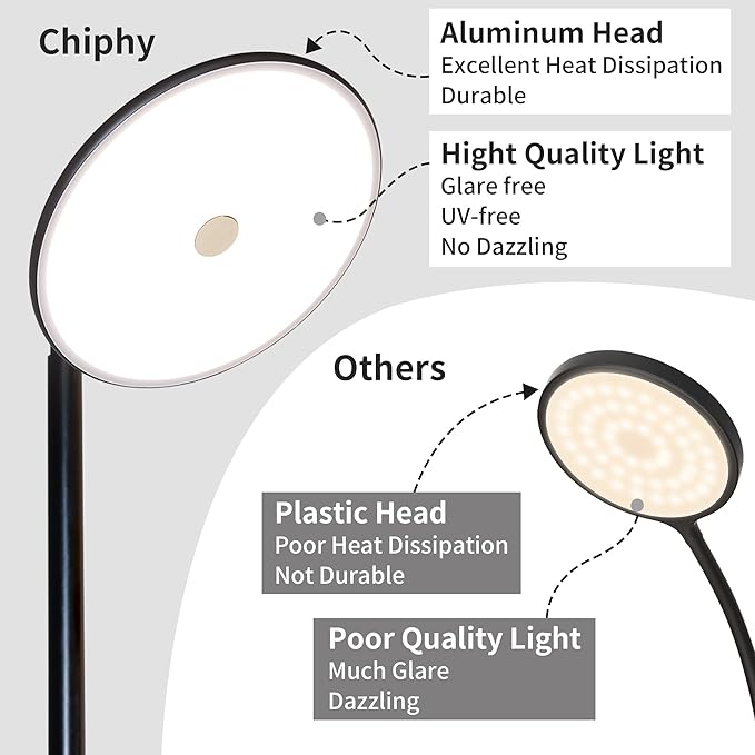 About This 【Super Bright Floor Lamp】With 40W 3500 Lumen 30000Lux high efficiency LEDs, chiphy led floor lamp offers ultra brightness...