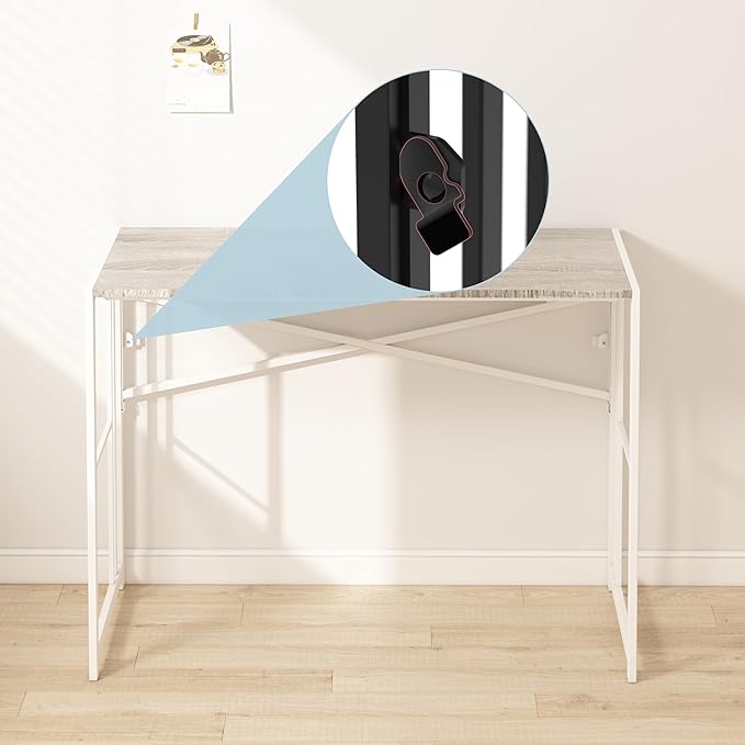 EMODA Folding Computer Desk 40 inch, No Assembly Needed Home Office Table Study Writing Gaming Desk, Beige