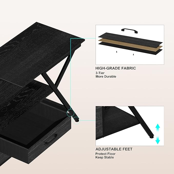 Modern 55" TV Stand with Power Outlet for TV up to 65 Inch, LED and 2 Storage Fabric Drawers, Entertainment Center with Charging Station for Living Room Bedroom (Charcoal Black)