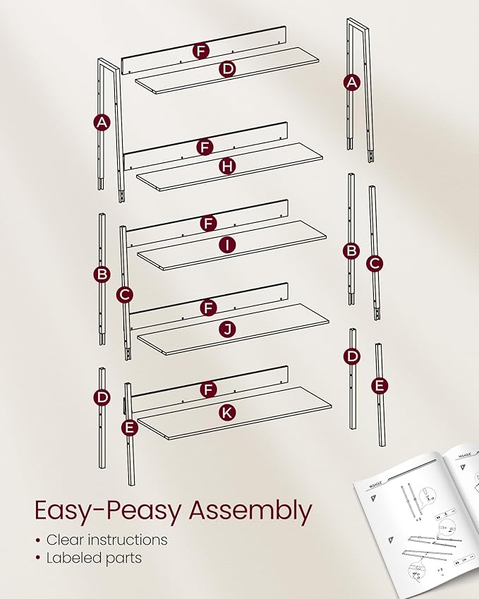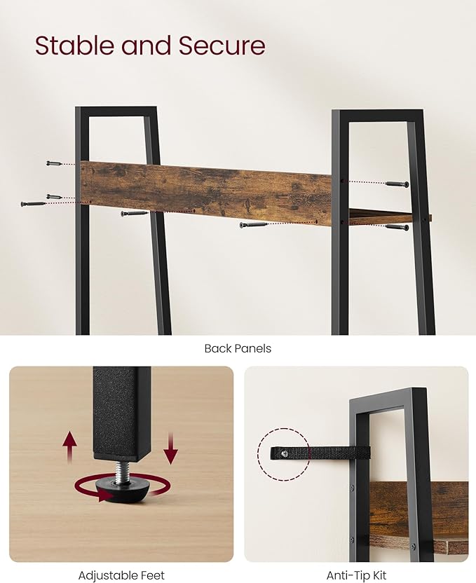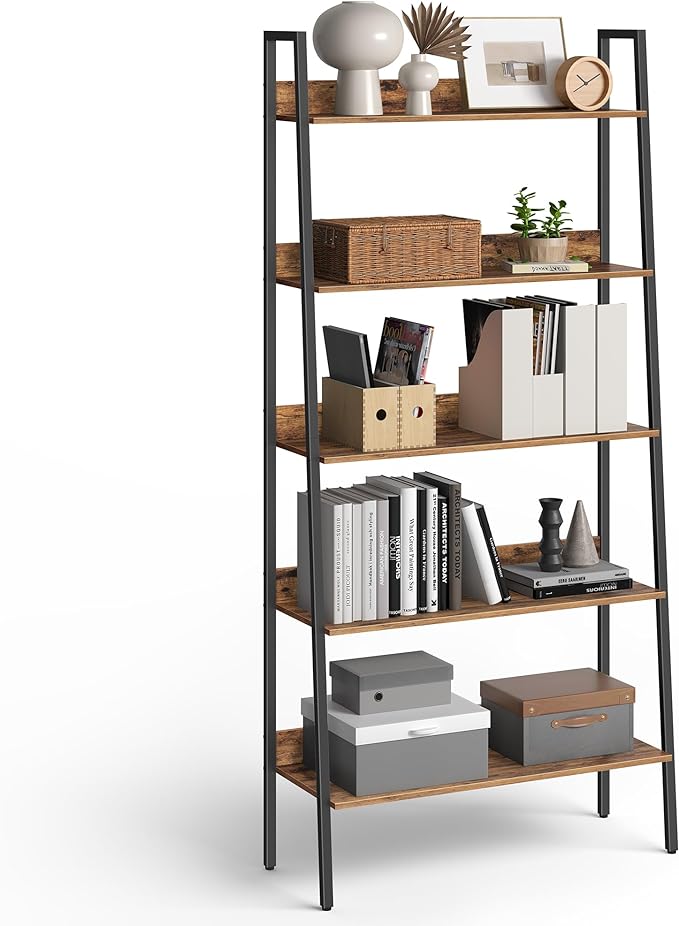 VASAGLE Bookshelf, 5-Tier Bookcase, Ladder Shelf for Home Office, Living Room, Bedroom, Kitchen, Rustic Brown and Ink Black ULLS129B01