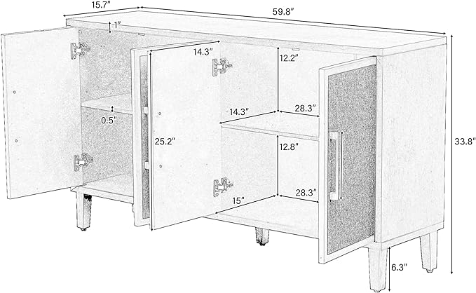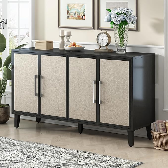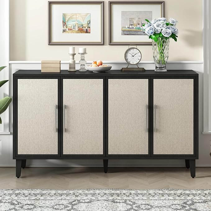 Merax Sideboard Buffet Cabinet with Storage, 4 Linen Door Cupboard w/Adjustable Shelves, Wood Console Table for Entrance, Study or Living Room, Beige