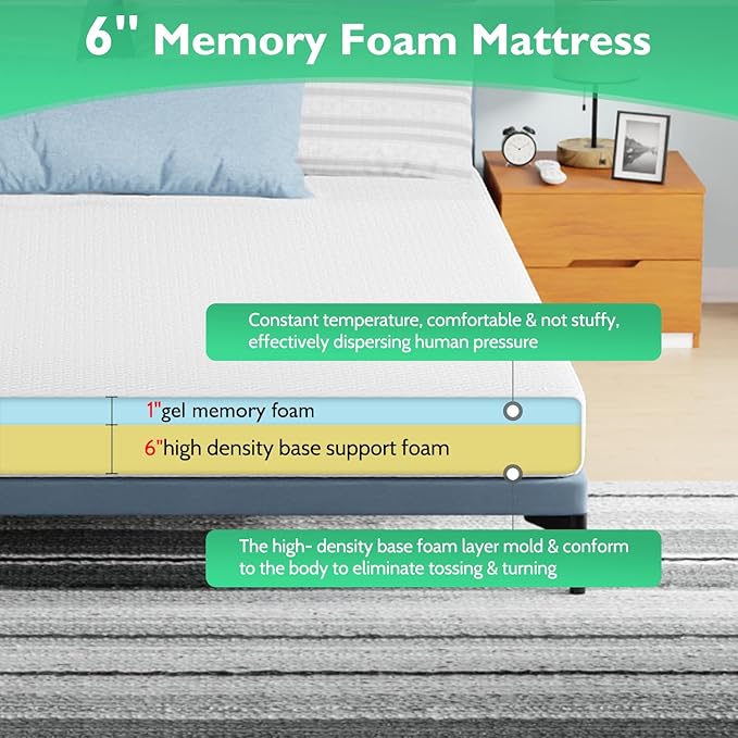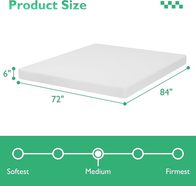 FDW California King Mattress 6 inch Gel Memory Foam Mattress Medium Firm Mattresses for Cool Sleep Relieving Pressure Relief CertiPUR-US Certified Mattress in a Box