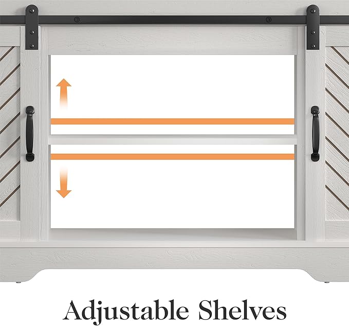 Farmhouse TV Stand for 23" Electric Fireplace, Tall Entertainment Center for 65+ Inch TV, Rustic TV Console with Sliding Bar Door for Living Room (Wood-Tone and White)