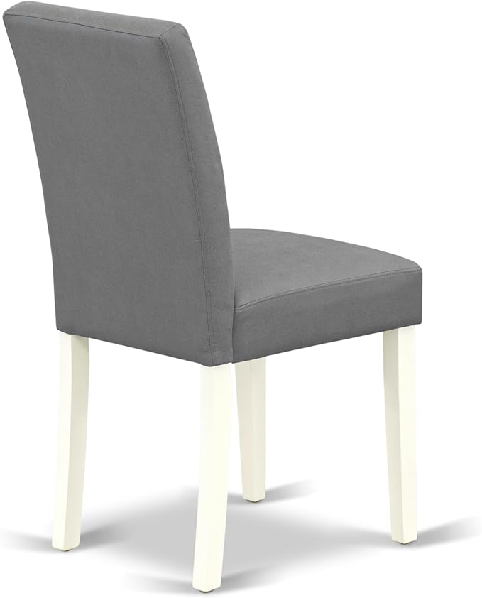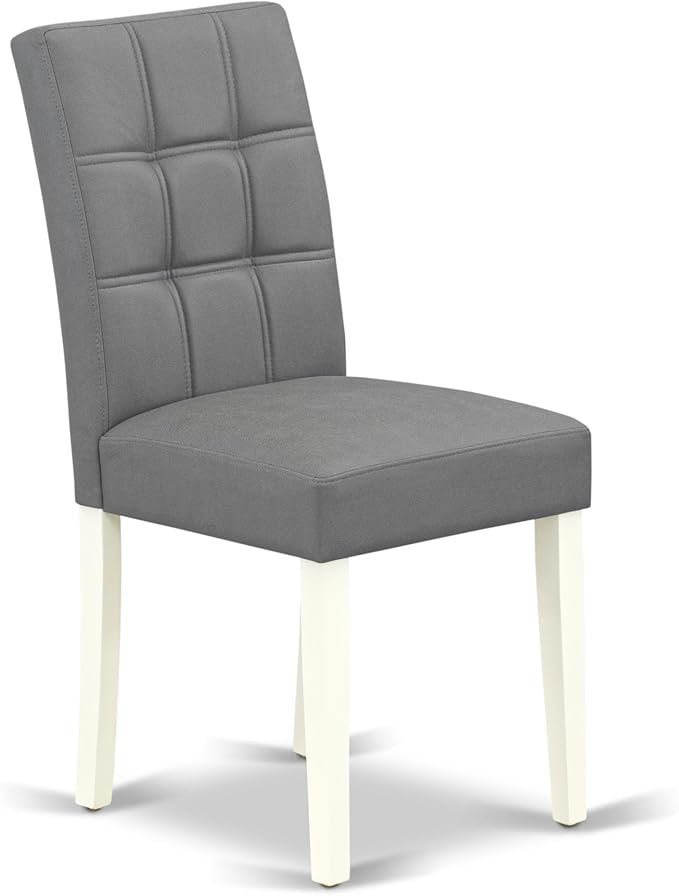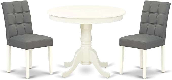 East West Furniture ANAS3-LWH-41 Antique 3 Piece Kitchen Set consists A Wooden Table and 2 Platinum Gray Faux Leather Person Chairs with Stylish Back, Linen White Finish, 36x36 Inch