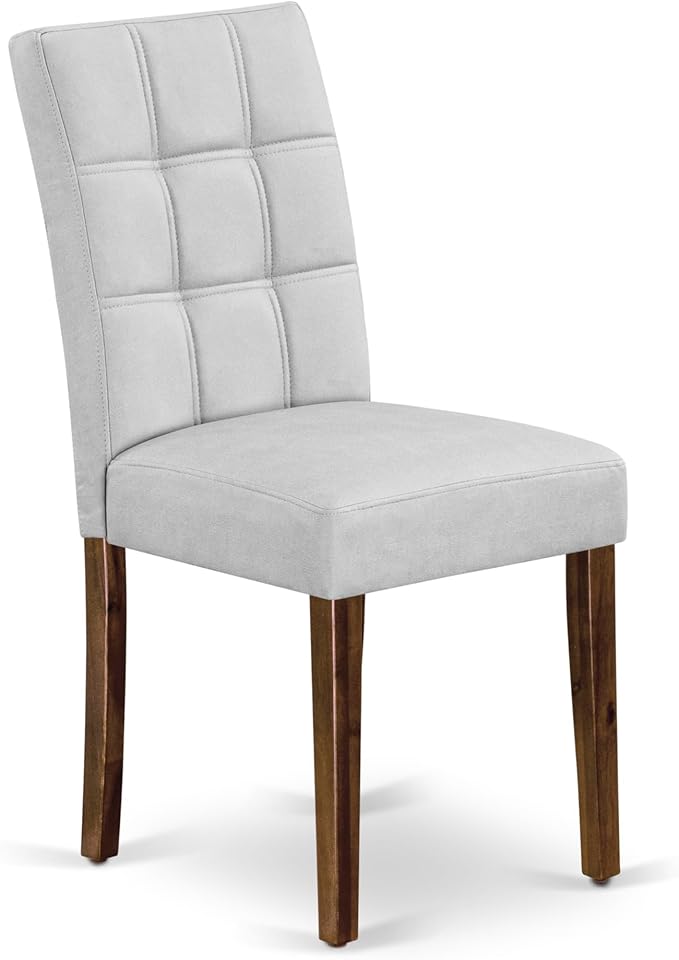 East West Furniture ANAS5-AWA-27 5 Piece Mid Century Dining Set Includes A Dinner Table and 4 Light Gray Faux Leather Parsons Chairs, Antique Walnut, 36x36 Inch