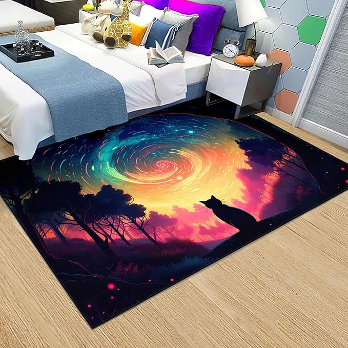 About This Magic Black Cat Design: Black Cat Rugs for Boys Bedroom Black Cat Area Rugs for Kids Room colorful...