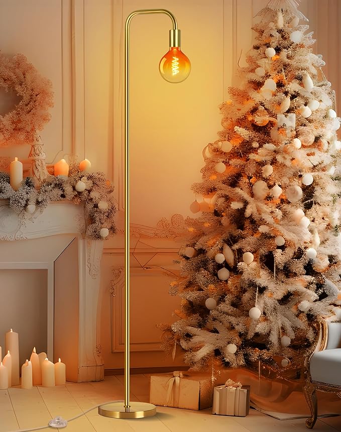 About This 【Gold Floor Lamp with Globe Bulb】: The modern floor lamp features a round weighted base and matte gold...