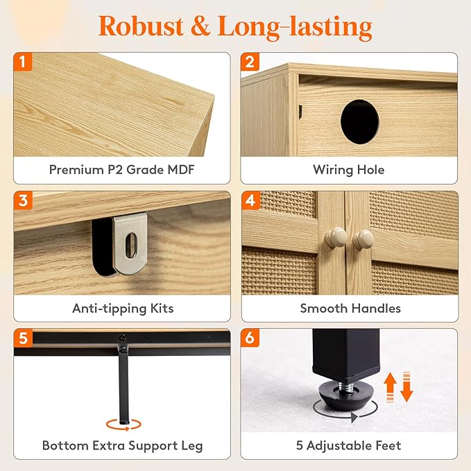 About This Elegantly Stylish Cabinet: This buffet cabinet seamlessly blends natural finishes with beautifully adorned ratten door surfaces, making it...
