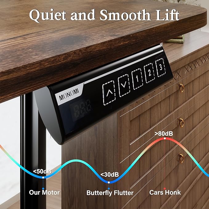 Monomi Electric Standing Desk, 71 x 31.5 inches Height Adjustable Desk, Ergonomic Home Office Sit Stand Up Desk with Memory Preset Controller (Rustic Brown Top/Black Frame)