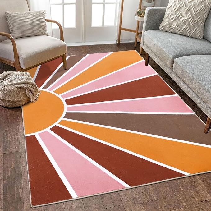 About This COLORFUL SUN RAINBOW RUGS: Expressive sun patterns combined with bright colors make this area rug extremely expressive, creating...