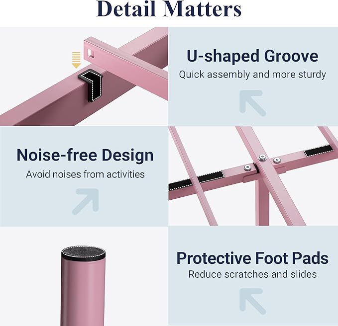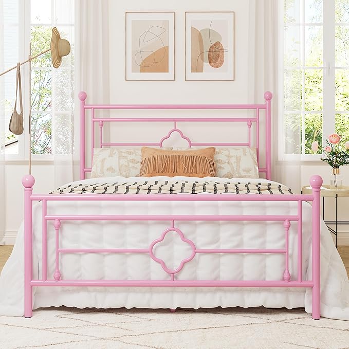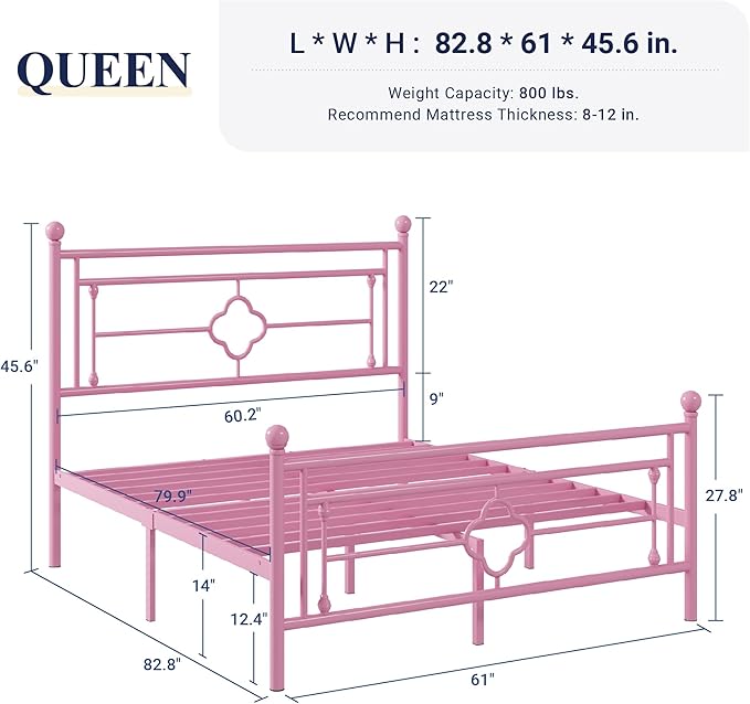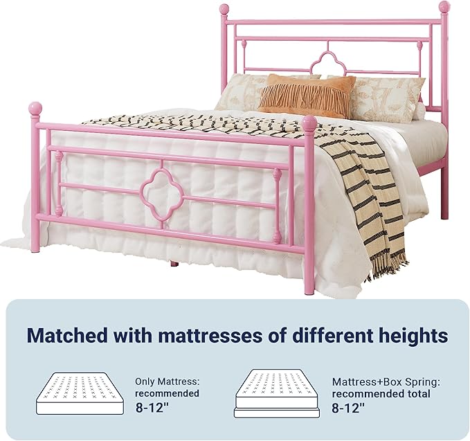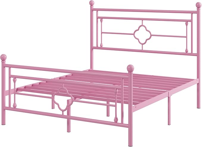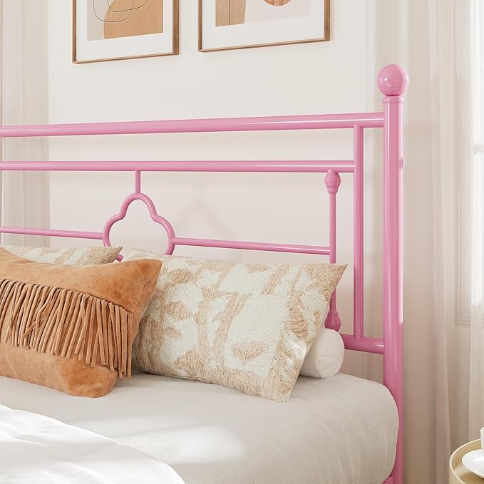 Allewie Queen Size Metal Platform Bed Frame with Victorian Vintage Headboard and Footboard/Mattress Foundation/Under Bed Storage/No Box Spring Needed/Noise-Free/Easy Assembly, Pink