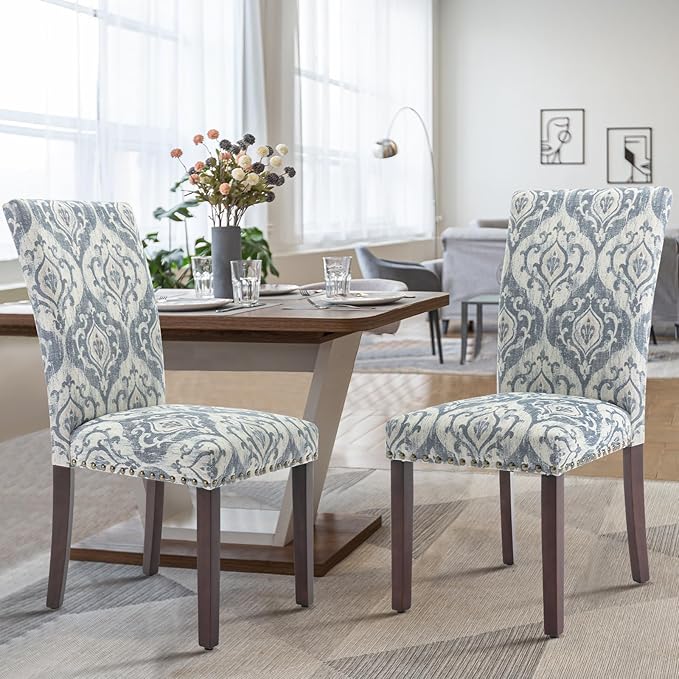 About This 🌈 SIMPLE YET ELEGANT LOOK- Nailhead-trimmed upholstery, clear and clean lines make these parsons chairs a relaxed yet...