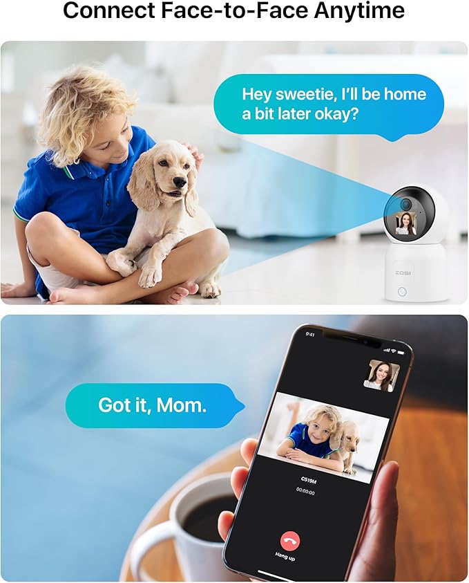 ZOSI 4MP 2 Way Video Security Camera, C519M 360° View Baby/Pet Dog Monitor, 2.5K Plug-in 2.4G/5G Dual-Band WiFi Smart Home Indoor Cam,One-Touch Call,Human Detection,Pan/Tilt,Cloud & SD Card Storage