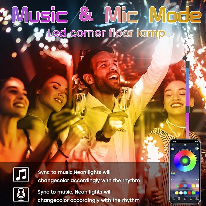 Music Sync Corner Floor Lamp with App/Remote Control, 53" RGB+IC+Warm White LED Corner Lamp for Reading, Gaming, LED Floor Lamp with Timer, Color Changing Corner Light for Bedroom