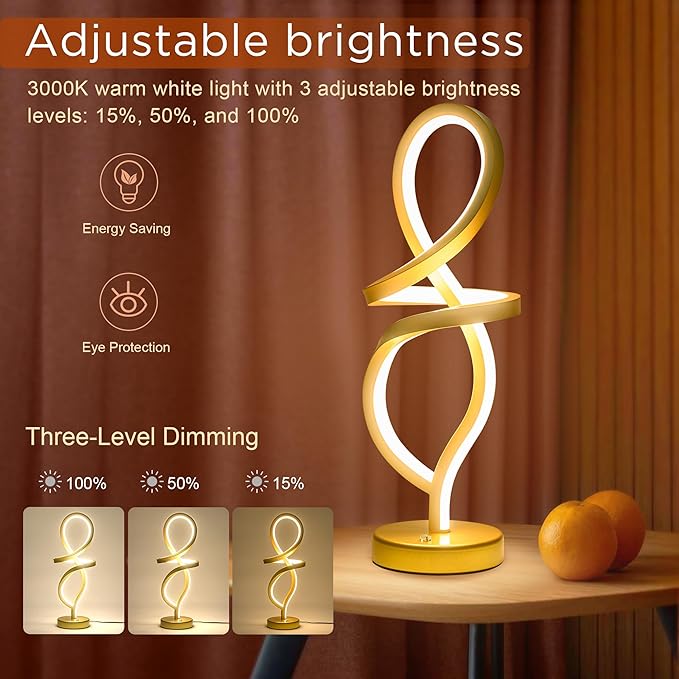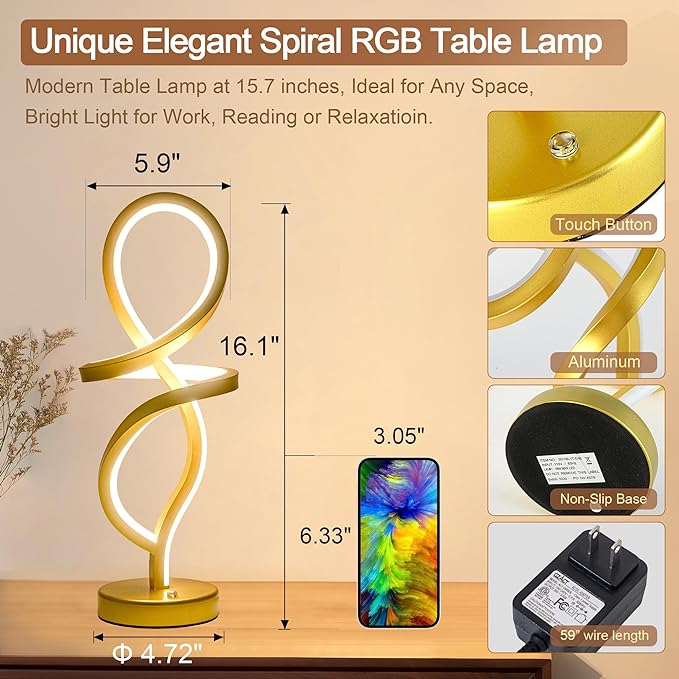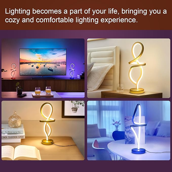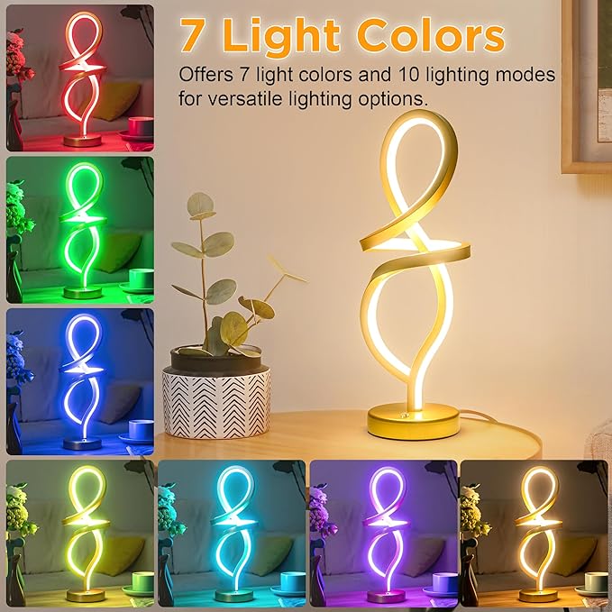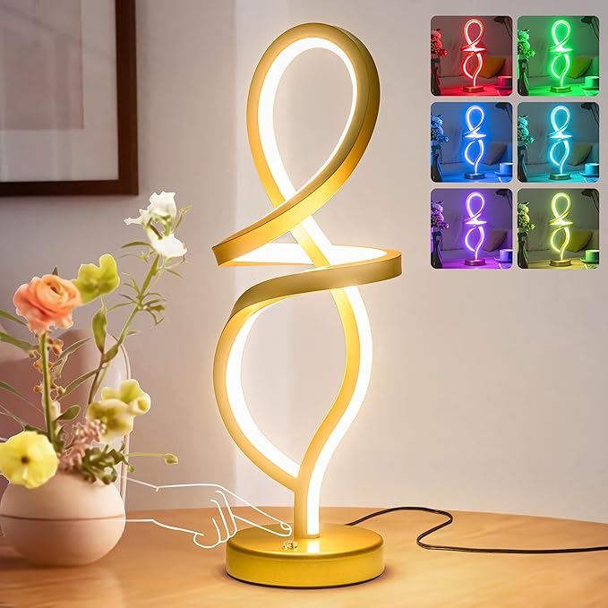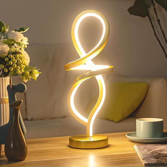 About This 【Contemporary Spiral Design】 - This modern lamp has a elegant spiral aesthetic design. The Gold finish painted add...