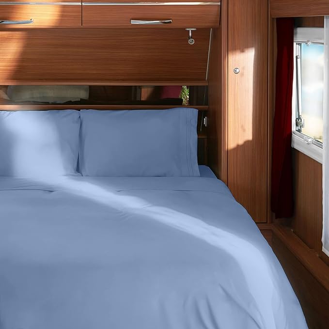 Mellanni RV Short Queen Sheets - 4 PC Iconic Collection Bedding Sheets & Pillowcases - Hotel Luxury, Extra Soft, Cooling Bed Sheets - Deep Pocket up to 10 inch (RV/Short Queen, Sky Blue)