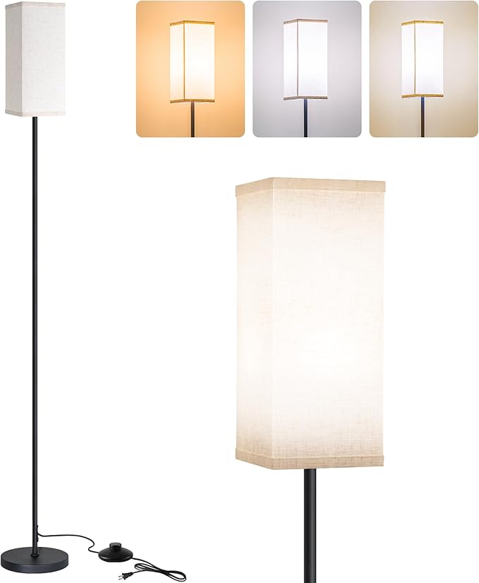 Floor Lamp, Corner Standing Lamp with Linen Lampshade, 3 Color Temperatures, Pole Lamp for Living Room Bedroom Office, Office Lamps for Work, 9W LED Bulb Included