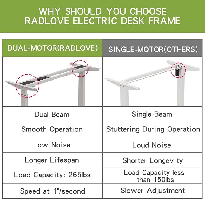 About This 【Dual-Motor Designed】: Telescopic height adjustment allows you to go from sitting to standing at the push of a...