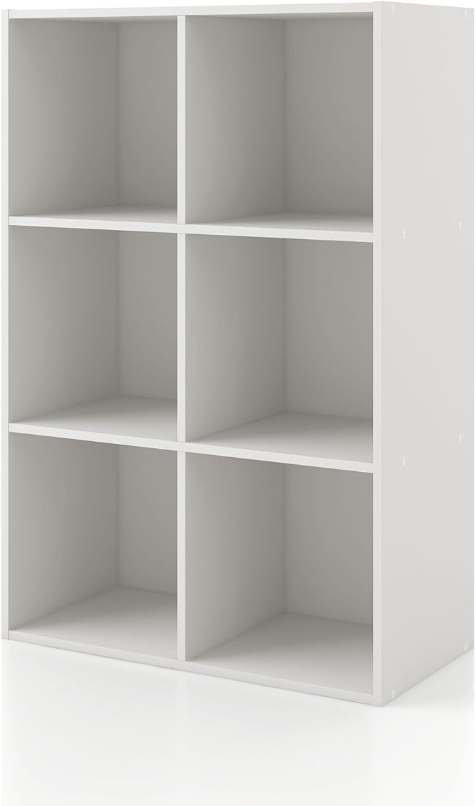 Apexa 6 Cube Storage Organizer Shelves, Stackable Wood Bookcase Fits Cubby Bins for Organization, Dorm Teen Room Decor & Home Office, White