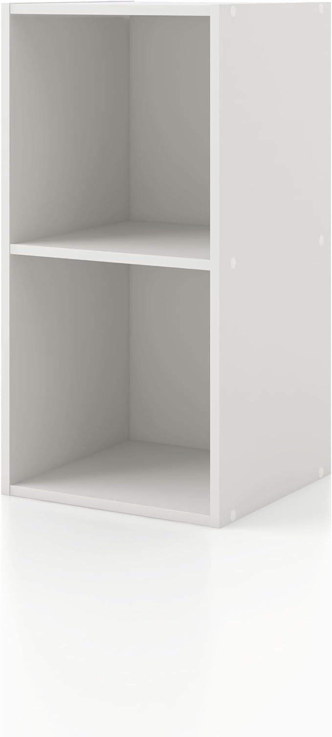 Apexa 2 Cube Storage Organizer Shelves, Stackable Wood Bookcase Fits Cubby Bins for Organization, Dorm Teen Room Decor & Home Office, White