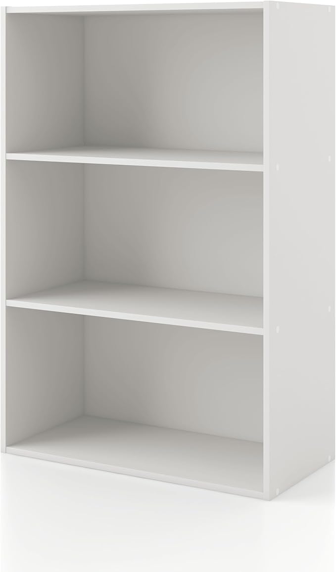 Apexa 3-Tier Cube Storage Organizer Shelves, Stackable Wood Bookcase Fits Cubby Bins for Organization, Dorm Teen Room Decor & Home Office, White