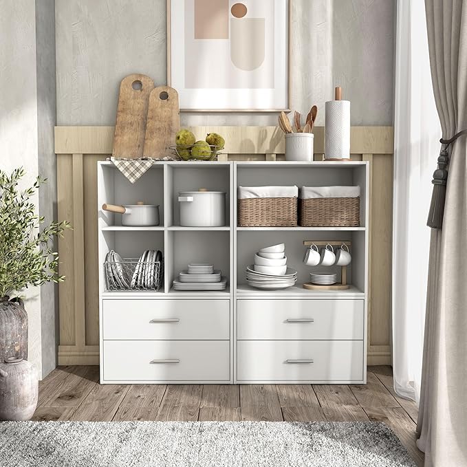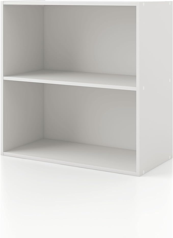 Apexa 2-Tier Cube Storage Organizer Shelves, Stackable Wood Bookcase Fits Cubby Bins for Organization, Dorm Teen Room Decor & Home Office, White