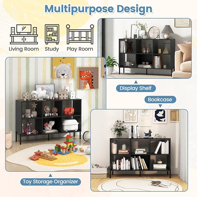 LOKO 6 Cube Bookcase, 3-Tier Floor Open Bookshelf with 5 Metal Legs, Cube Storage Organizer with Adjustable Shelves, Modern Display Shelving for Living Room, Study, Bedroom, Office (black)