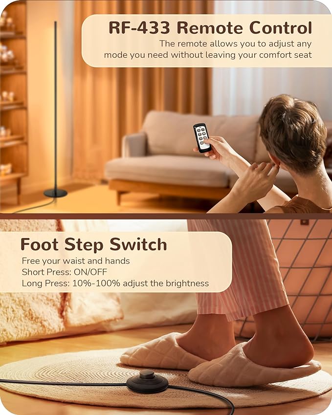 EDISHINE Minimalist LED Corner Floor Lamp with Remote, Set of 2 Modern Dimmable Mood Light, 57.5" Standing Tall Lamp for Living Room, Bedroome, 7 Color Temperature 2700-6000K (Black)