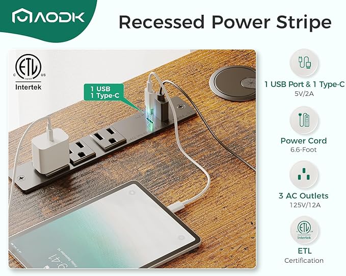 About This 【USB Charging Port & Cable Management】The PC desk is equipped with 3 power outlets, 1 USB charging port...